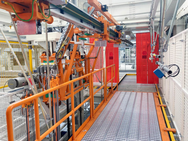 In total, about 1,500 metres of track with two lifting stations, four floor lifters and numerous switches are involved. The fully automatic pick-up of vehicle parts in order to transport them to the respective assembly location at the right time requires many different operations. We take care of planning and engineering, CAD design as well as programming and the realisation of interfaces for upstream and downstream systems. We also supply the necessary control cabinets and operating elements.